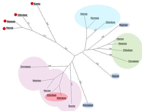 Из рисунка видно, что археи расположены беспорядочно по ветвям дерева. Объяснением это может послужить тот факт, что для архей пока не четко установлена таксономия. Члены их таксономической группы находятся на большом расстоянии друг от друга, поэтому их гены находятся беспорядочно на ветвях эволюционного дерева.