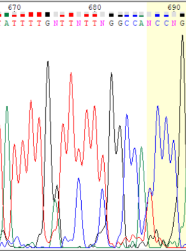 Для восстановления последовательности ДНК в образце необходимо дополнительно вручную проанализировать (так как программное оборудование допускает некоторые ошибки) полученную после секвенирования хроматограмму.