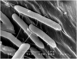 Описание бактерии и ее значениеКак и большинство видов из рода Clostridium, C. thermocellum имеет стерженеобразную форму тела. Этот вид относится к грам-положительным бактериям ,то есть клетки их тела окружены одной мембраной из липидного бислоя. Снаружи клеточной мембраны находится толстая клеточная стенка из муреина. C. thermocellum является анаэробным и термофильным организмом, производящим споры. Кроме того, эта бактерия имеет специальные клеточные структуры, позволяющие ей передвигаться в окружающей среде. Так как бактерия содержит уникальную систему ферментов, способную расщеплять нерастворимую целлюлозу, превращая ее в этанол (что имеет большое значение в производстве энергии из биомассы), геном этого организма был полностью секвенирован. Из - за способности разрушать целлюлозу, С. thermocellum,вероятно, может быть выделен из многих растительных организмов. Помимо этого, данный вид может быть выделен из коровьего и конского навоза , так как он необходим в пищеварительной системе этих животных для переработки целлюлозы травы.[1] |