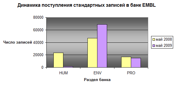 PRO. Видно, что банк стабильно пополняется геномами прокариот.