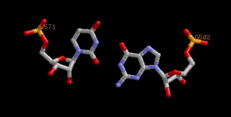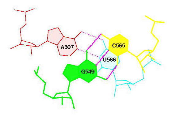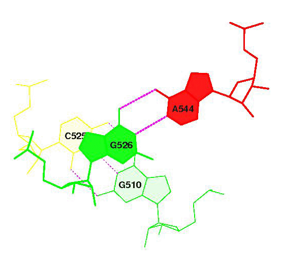 Это каноническое взаимодействие G519 - C556 и неканоническое G518 - U555.