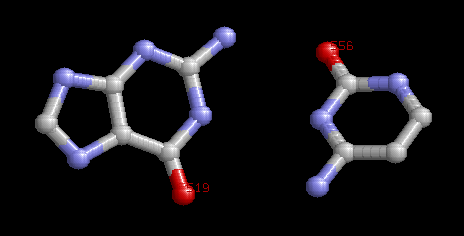 С помощью программы find_pair пакета 3DNA были определены возможные водородные связи между азотистыми основаниями (выходной файл программы analyze). В соответствии с полученными данными: