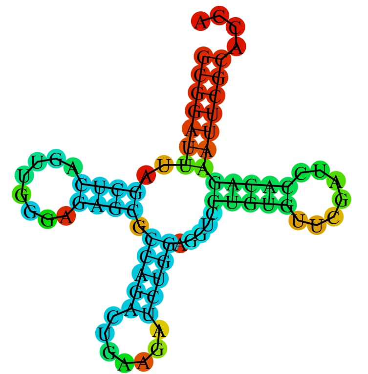 | Акцепторный стебель | 1-7:66-72 (6 пар + 1 неканоническая) | нет | 7 из 7 пар |