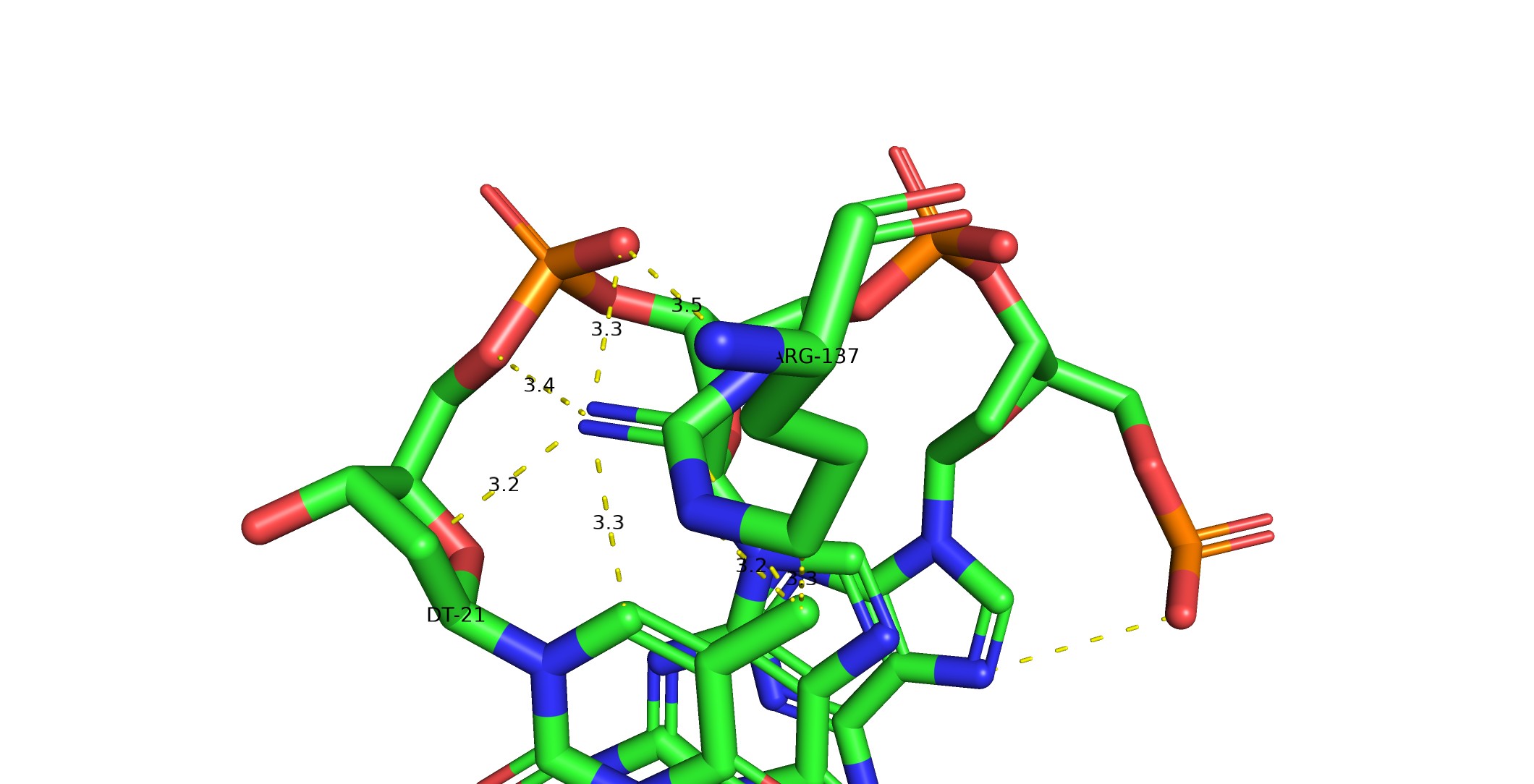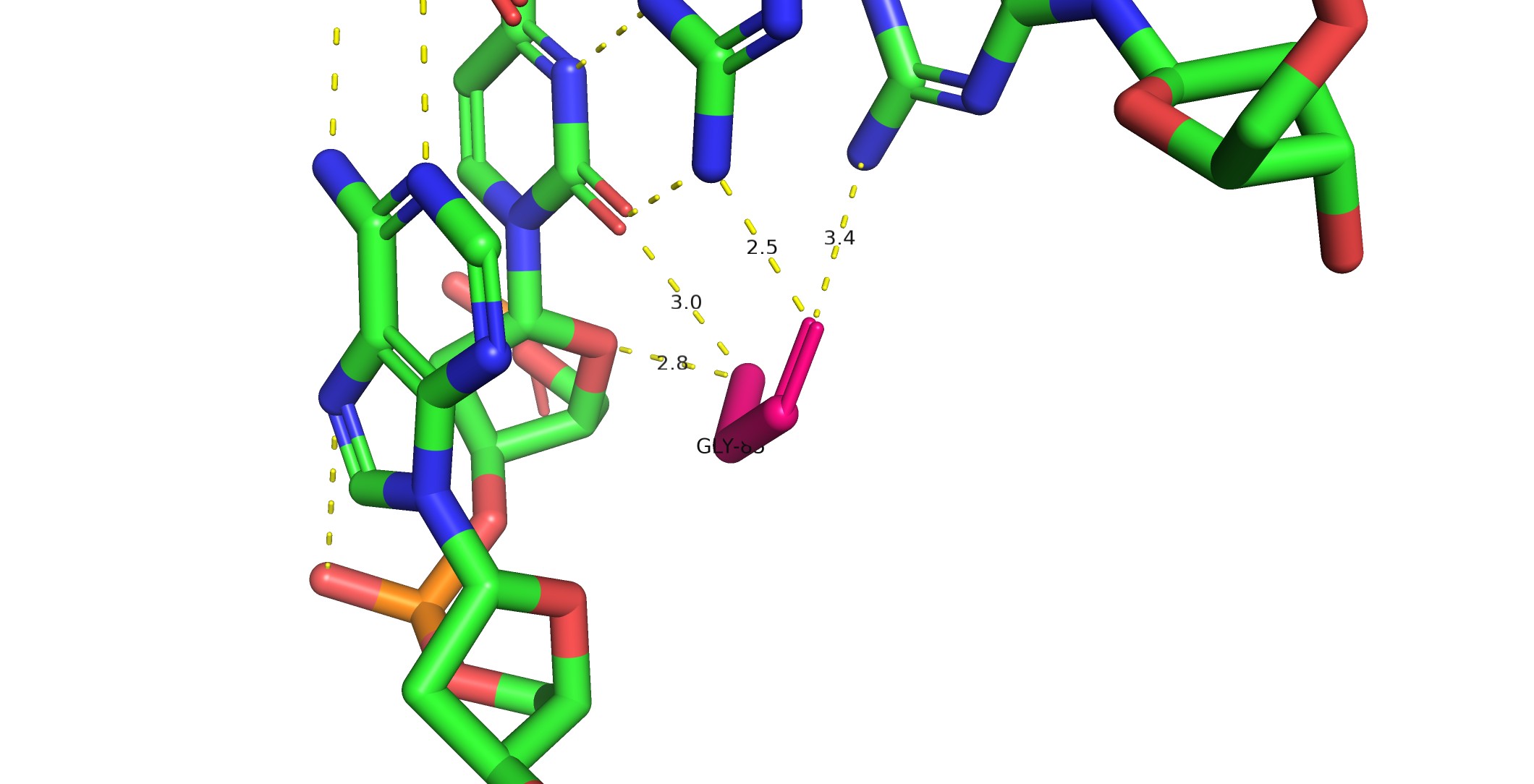 GLY85 связан не с остовом, а с двумя азотистыми основаниями, поэтому он, видимо, наиболее важен для распознования ДНК
