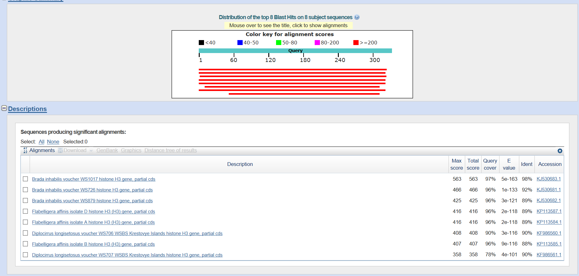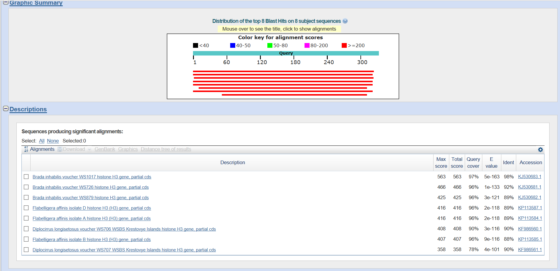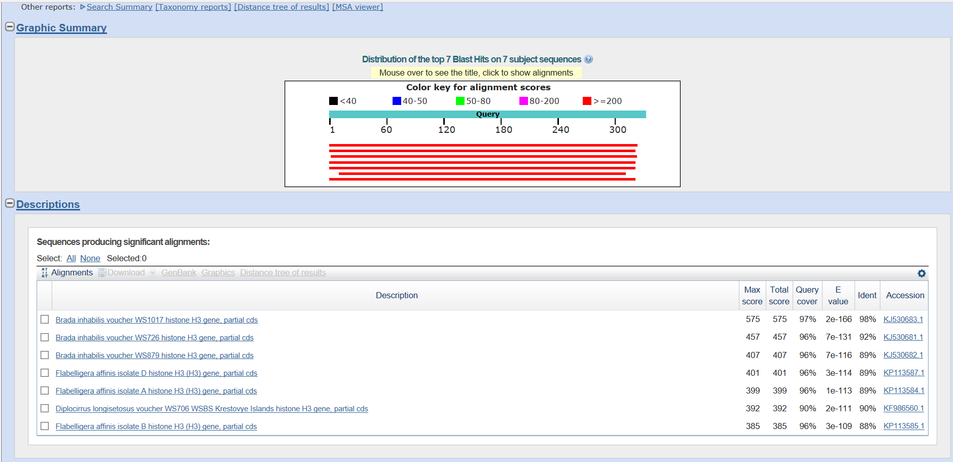 Рисунок 3. Результаты поиска с помощью Megablast