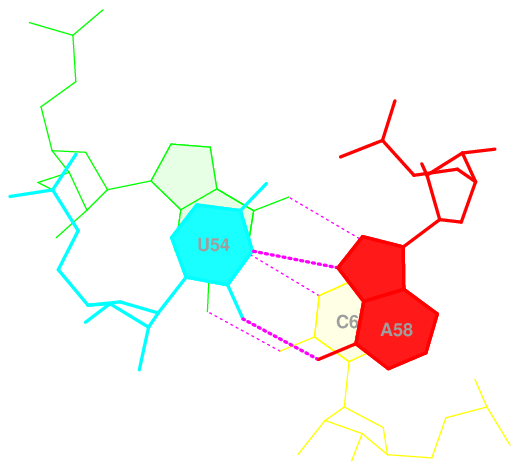 | U54-A58 | неканоническая пара внутри Т-петли |