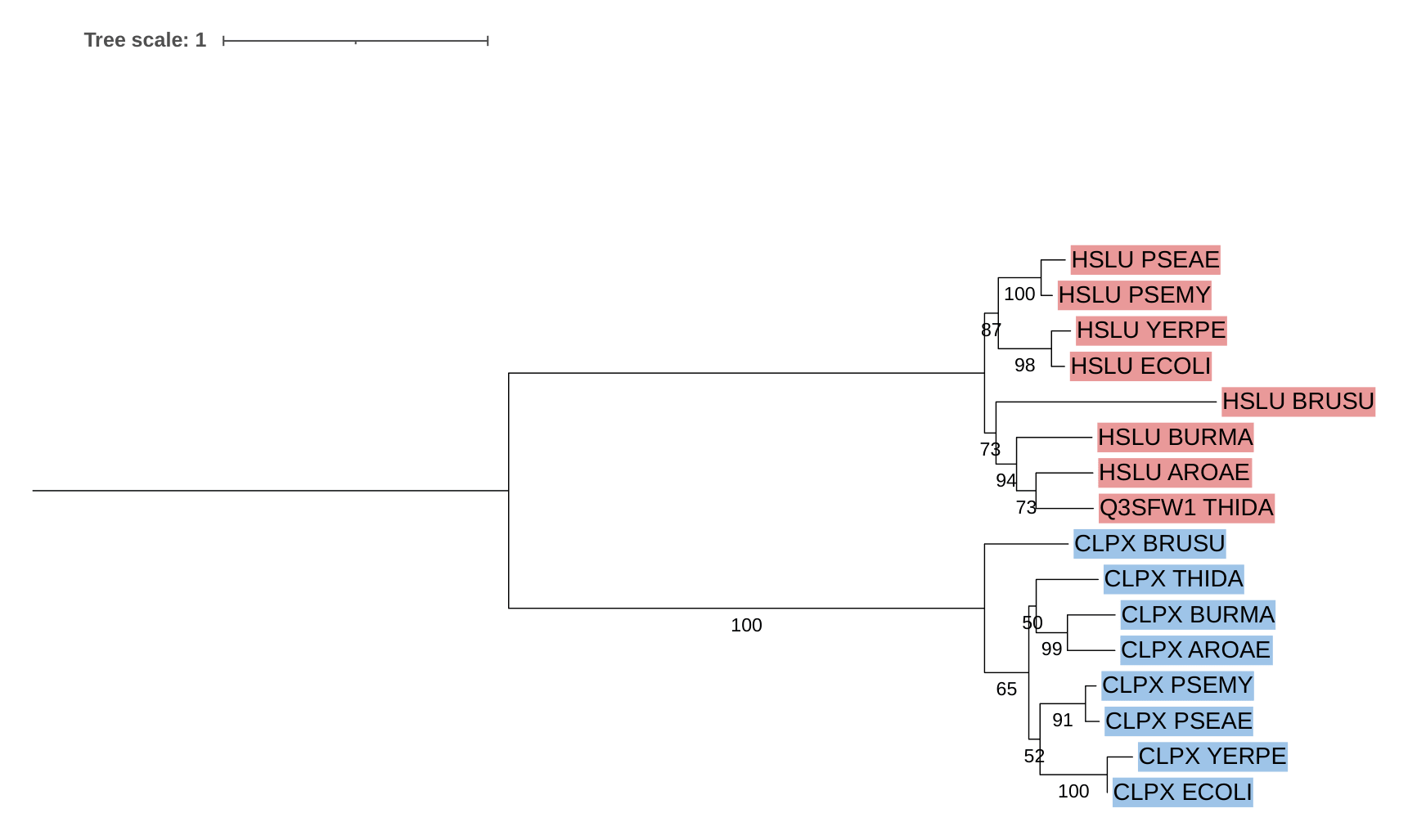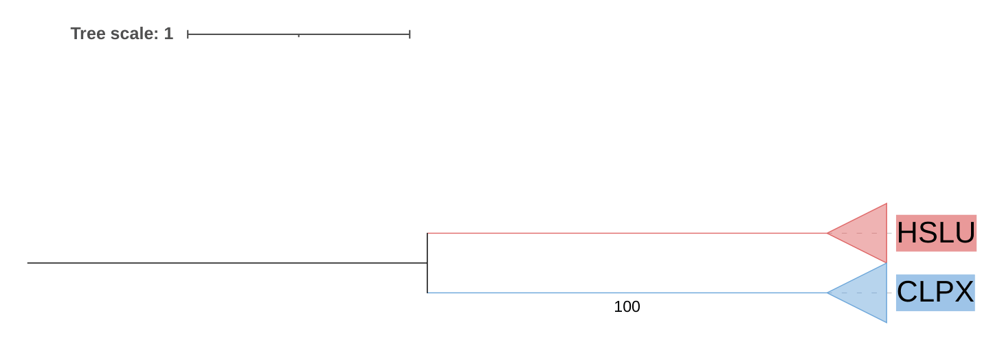 Были получены две основные ортологические группы (CLPX и HSLU), так, например, пары белков HSLU_PSEMY и HSLU_YERPE, HSLU_AROAE и Q3SFW1_THIDA