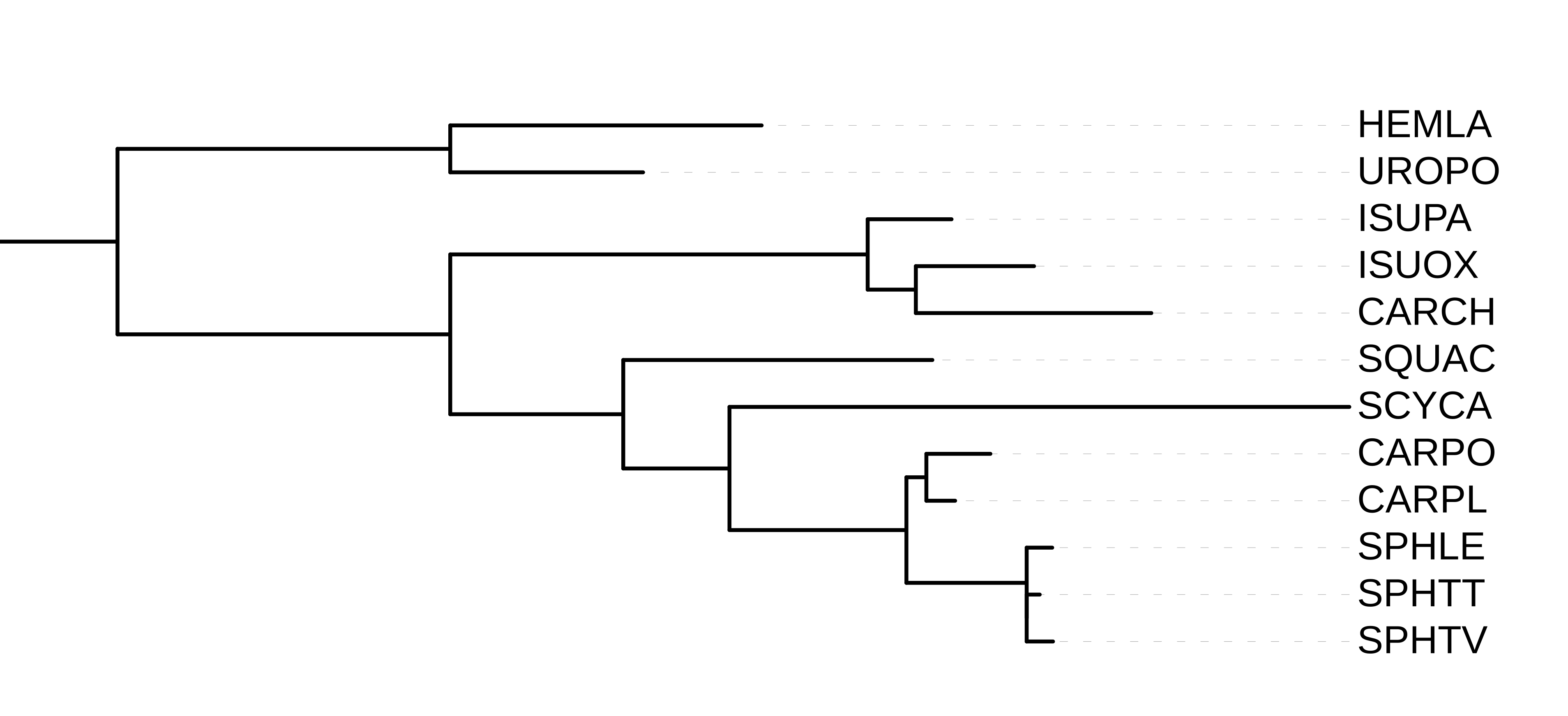 Также мы видим, что (HEMLA,UROPO) - Скаты (семейство Batoidea), находятся сильно ближе друг к другу, чем к каким-либо акулам.