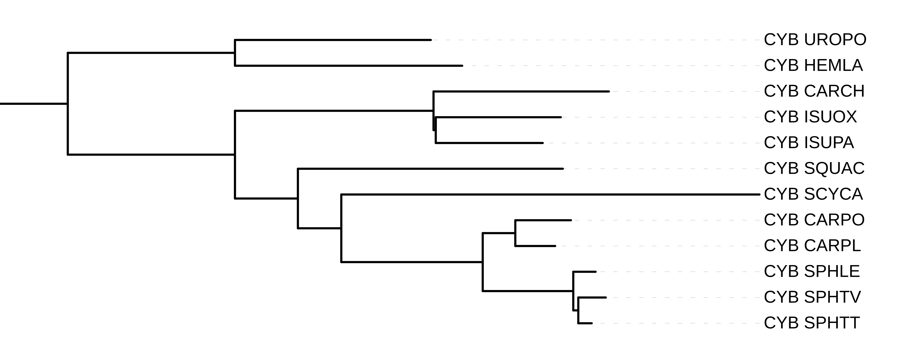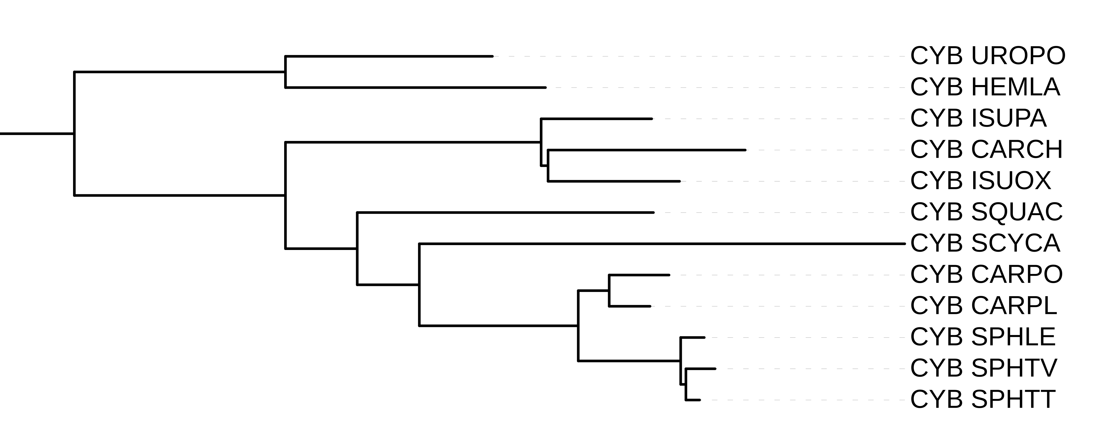 Для начала было получено выравнивание 12 последовательностей белка цитохром B из
