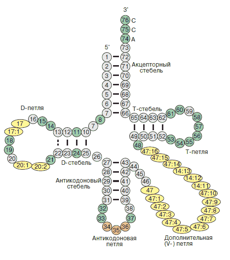 A C C A G A A G A DHU U 5MC C A G G 5MU PSU C A 1MA G U C C U G G C G G G G A A G C C A - 3' [973], где 901 и 973 - номера первого и последнего нуклеотида. Исследование вторичной структурыС помощью программы find_pair пакета 3DNA были определены возможные водородные связи между азотистыми основаниями (1F7V_NIC_old.out), была предсказана возможная вторичная структура. Рассмотрим следующую таблицу: