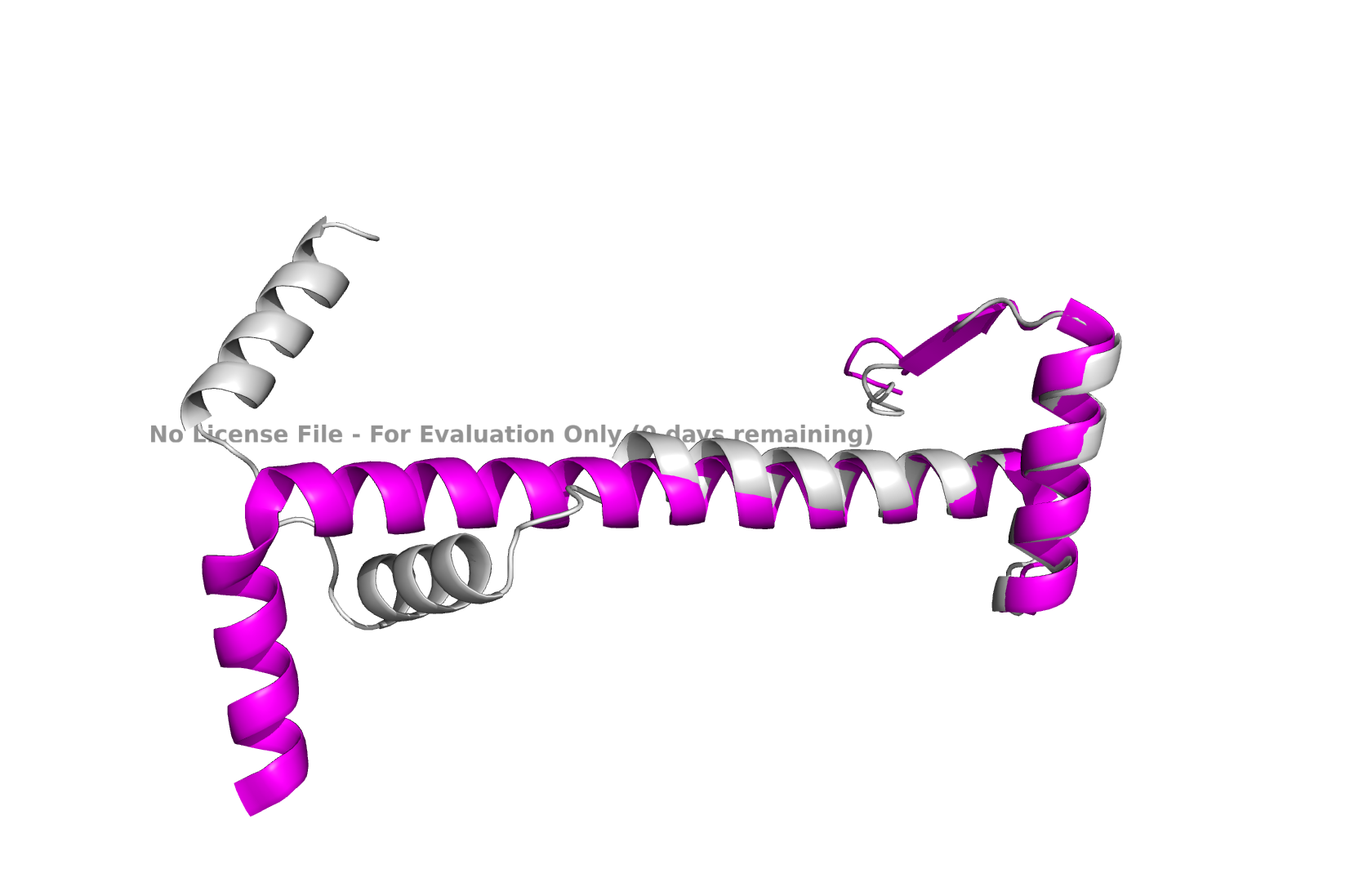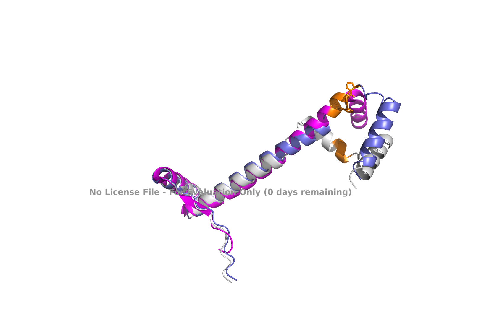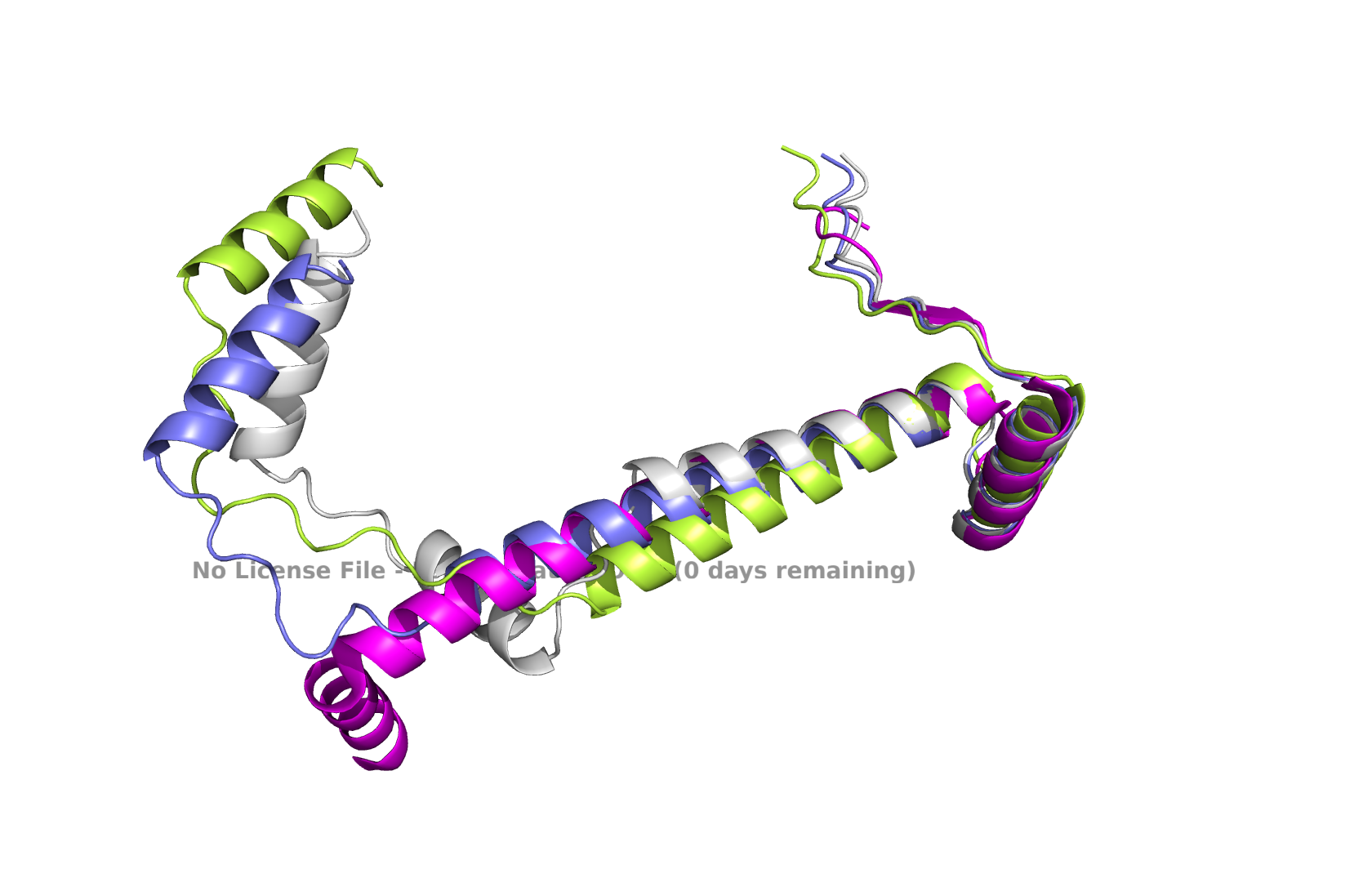 Видно общий каркас– альфа-спираль по центру. На концах предсказанная структура отклоняется от pdb, что может говорить о наличии линкера.