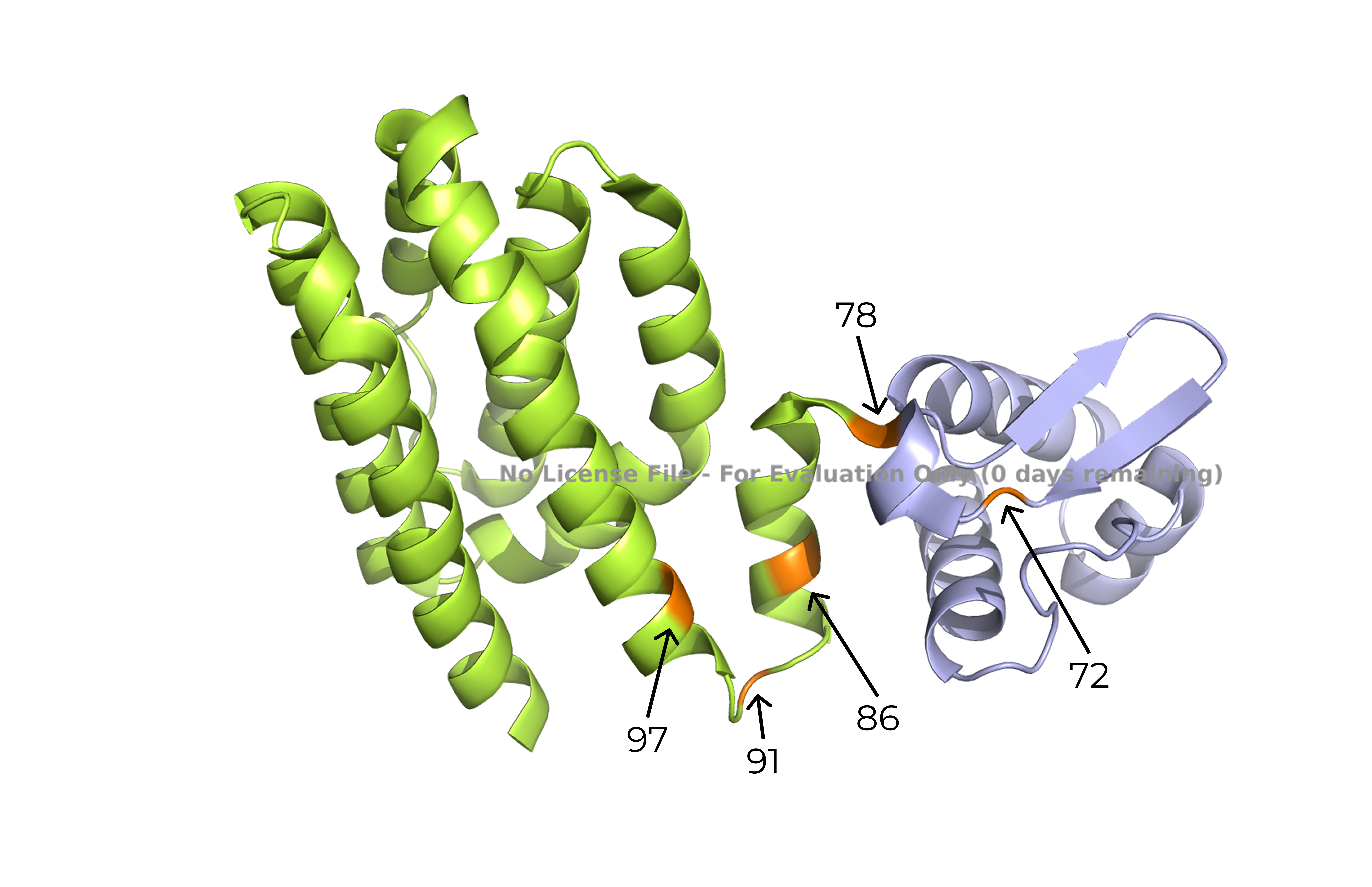 Рис 12. Положение 78 остатка, наиболее вероятное раздление домена.