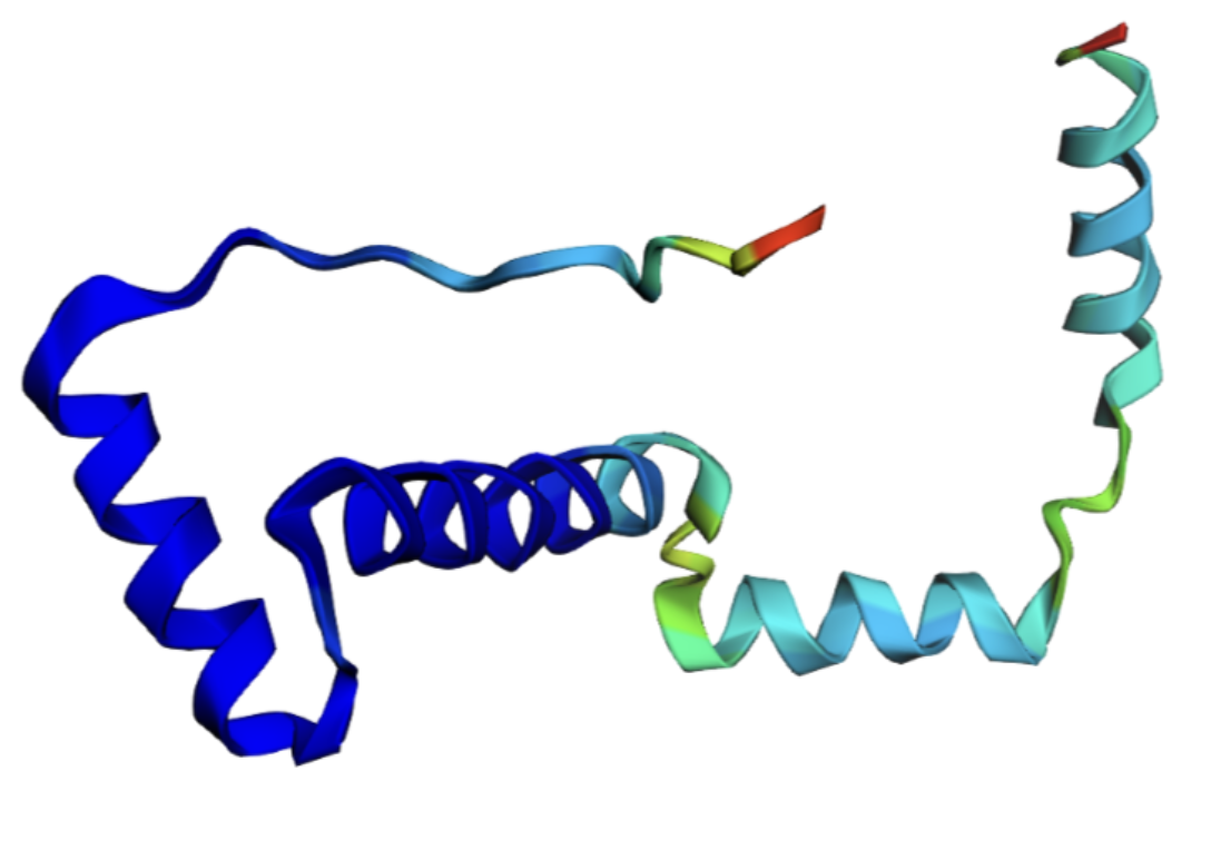 В целом AlphaFold реагирует на вставку пролинов в альфа-спираль предсказуемым образом: поскольку пролин не способен формировать водородные связи, стабилизирующие остов спирали, в точке такой замены модель последовательно предсказывает неупорядоченный участок. Основные вопросы возникают не к этому эффекту, а к предсказанию структуры самой последовательности. В частности, внутри протяжённой альфа-спирали появляется необъяснимая вставка disordered-region, модель не сворачивает его в альфа-спираль по неясной причине.