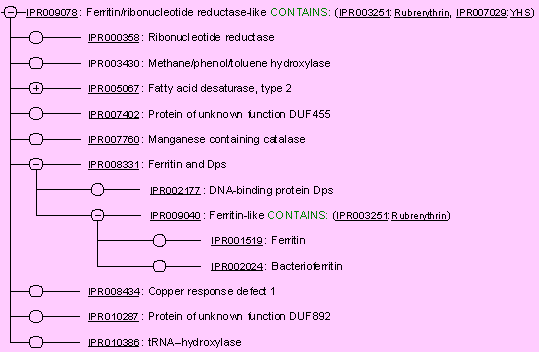 Запись IPR002024 называется Bacterioferritin. Тип записи Family. Такое семейство встречается в Bacteria, Eukaryota, Archaeа
