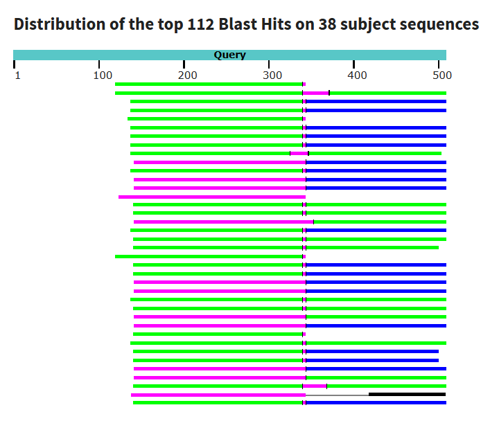 Как видно находок в разы больше, чем в предыдущем варианте, так как аминокислотные последовательности меняются не так быстро, как нуклеотидные, что связано с вырожденностью генетического кода и синонимичными заменами нуклеотидов, которые не приводят к изменению аминокислоты.