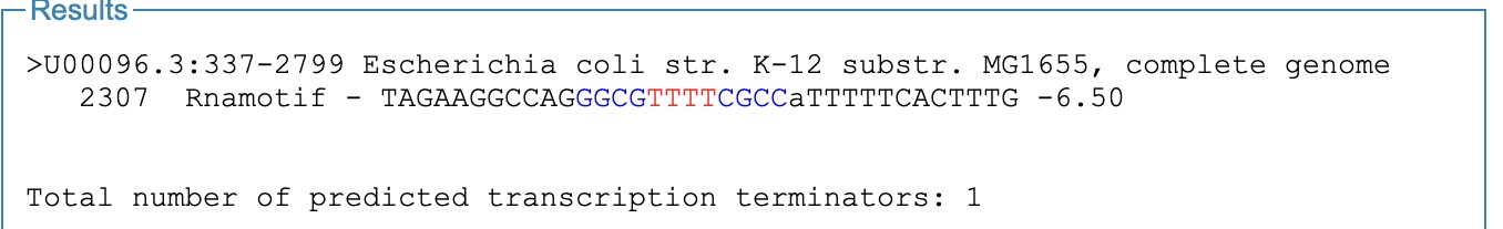 Jeffrey W Roberts Mechanisms of Bacterial Transcription Termination J Mol Biol . 2019RNAmotif — ищет шпильки по заданному структурному паттерну (стебель-петля + U-богатый участок)