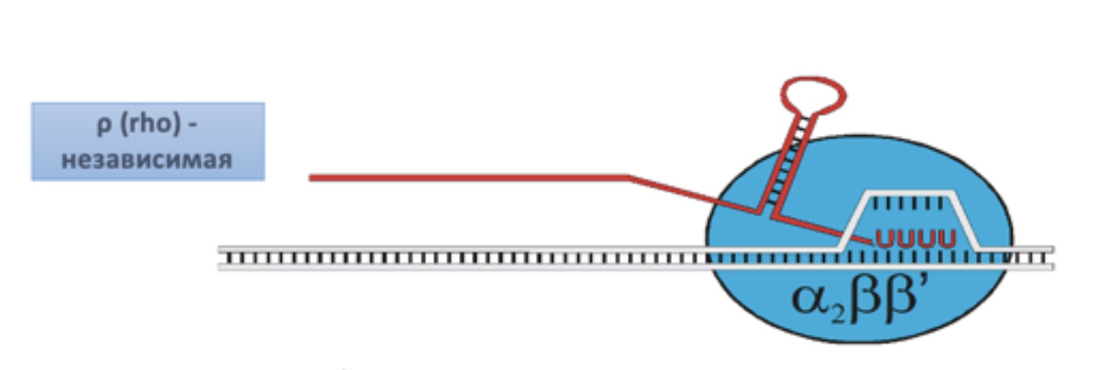 Предназначение Rho-независимого терминатора - это прерываание транскрипции. После паузы слабые водородные между урацилами и аденинами позволяют разорвать дуплекс РНК ДНК