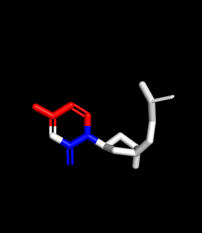 Для заданного основания цитозина определили и окрасили атомы смотрящие в сторону большой бороздки, синим - в сторону малой (смотри Рисунок 8).