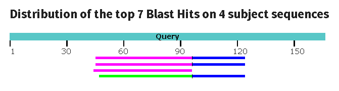 Примечание к рисункам 2 и 3: синим цветом выделены выравнивания со счётом 40-50 битов, зелёным - 50-80 битов, розовым - 80-200 битов.