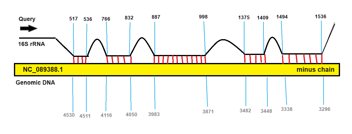 Затем при помощи приведённых ниже двух команд нашел участки сходства для 16S RNA и 23S RNA на последовательности генома Penicillium digitatum: