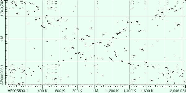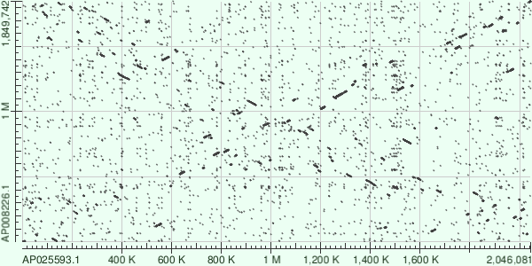 Я выбрал Thermus brockianus (про него был написан мой миниобзор, поэтому я и решил использовать архей из рода Thermus для построение карт локального сходства) и Thermus thermophilus HB8. Для построения карт я выбрал их хромосомы