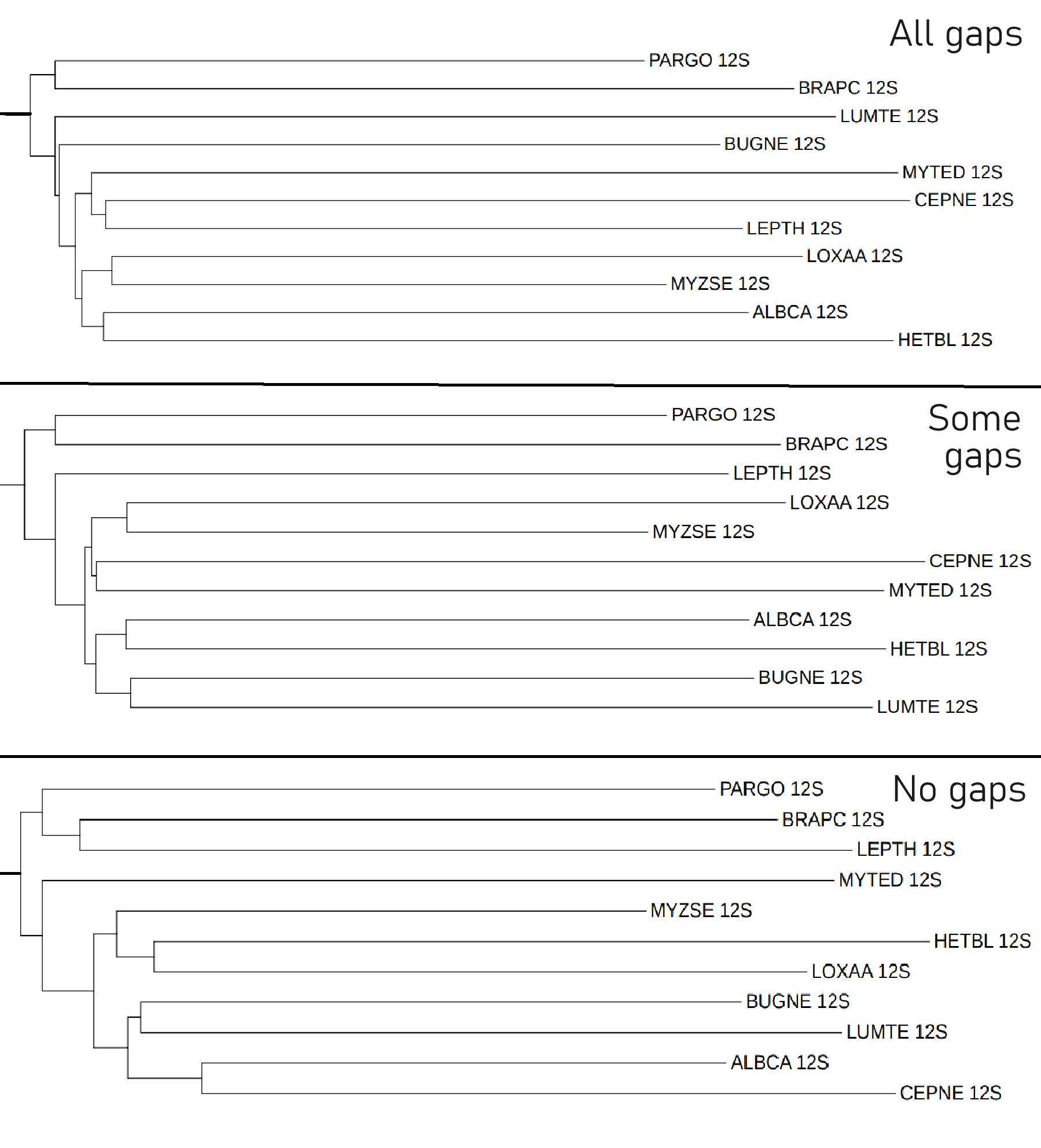 – дерево 'All gaps' объединило родственные HETBL и ALBCA в одну группу