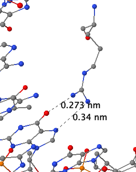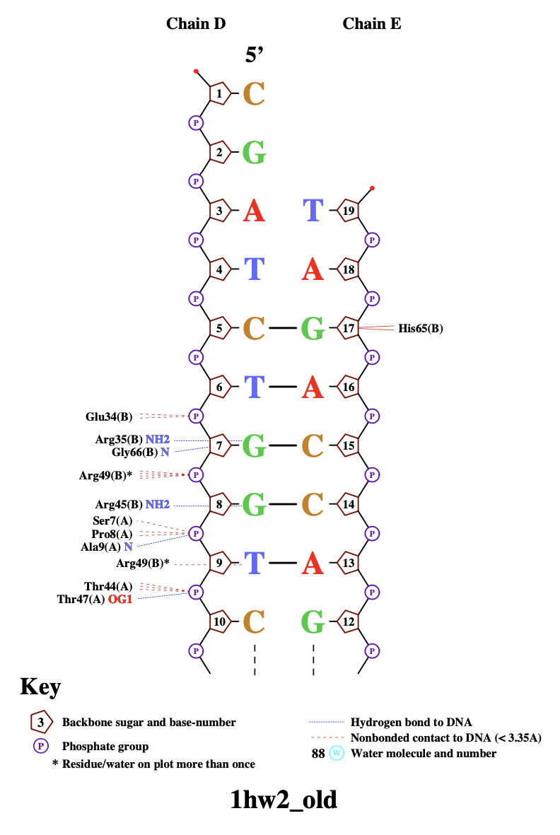 Далее программа выдала следующую визуализацию контактов между ДНК и белком (рис 2 и 3).