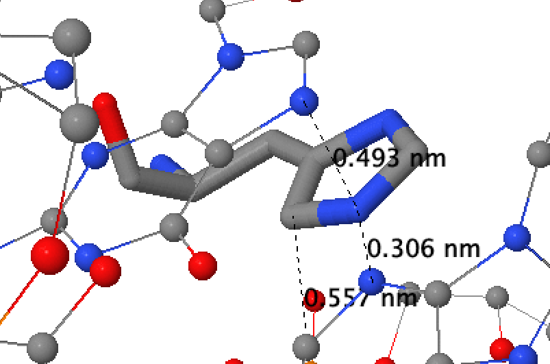 С помощью Jmol была выполнена визуализация расположения и контактов данных аминокислот (см рисунки 4, 5).