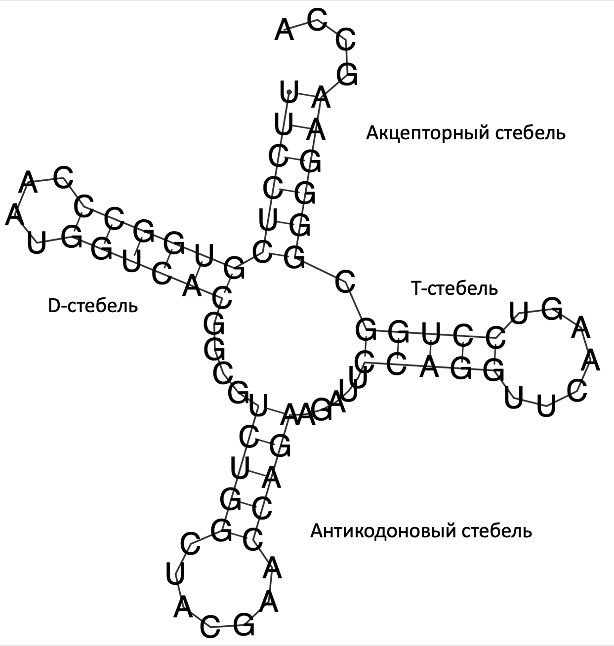| Акцепторный стебель | 901-907, 966-972 (7 пар) | - (не смог найти нужные пары) | 6 из 7 |