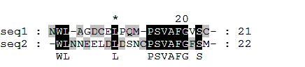Найдём первую с N-конца выравнивания "близкородственную" замену а.о.