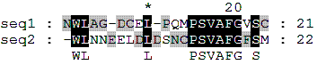 Определим % сходства выровненных фрагментов.