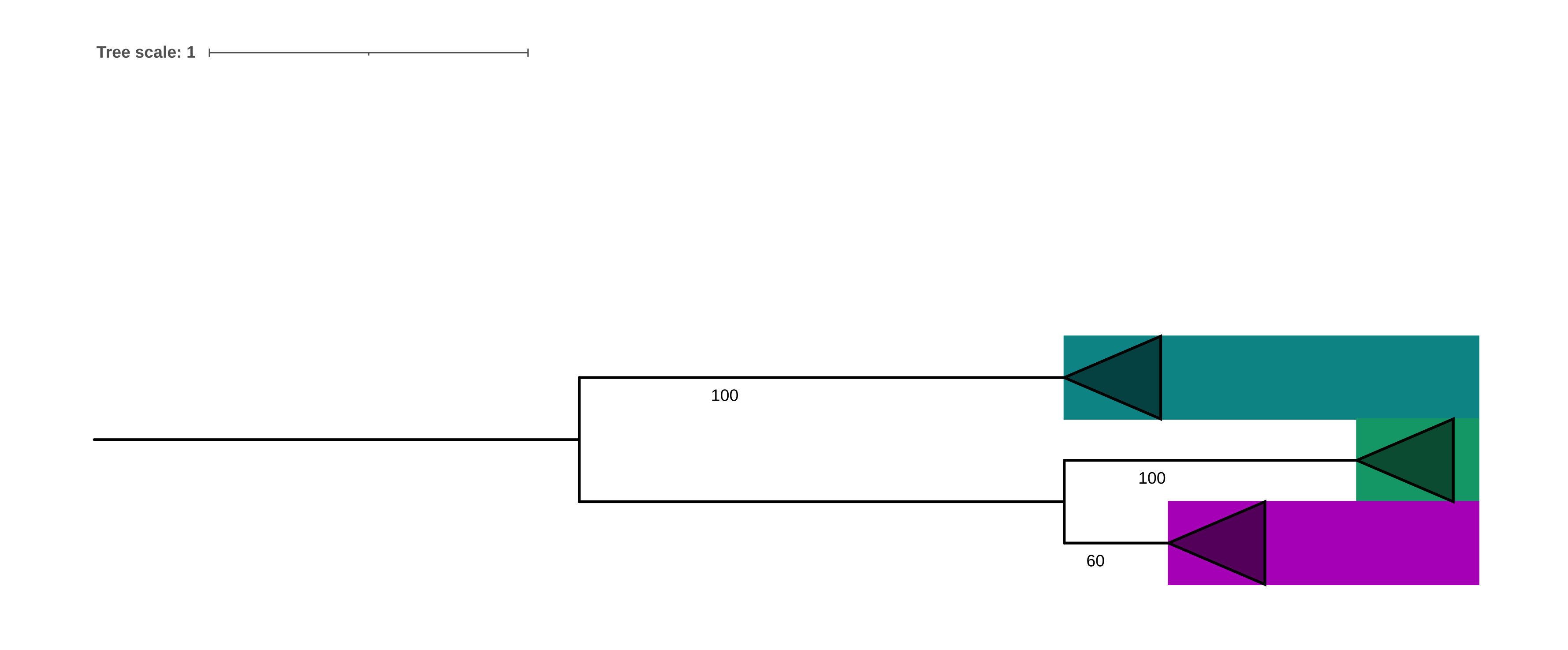 Для полученных находок были скачаны fasta последовательности, объеденены в один файл и выровнены с помощью программы muscle. Далее полученное выравнивание с помощью написанной программы было переведено в формат phylip-relaxed, после чего было построено дерево с помощью программы fastme:
